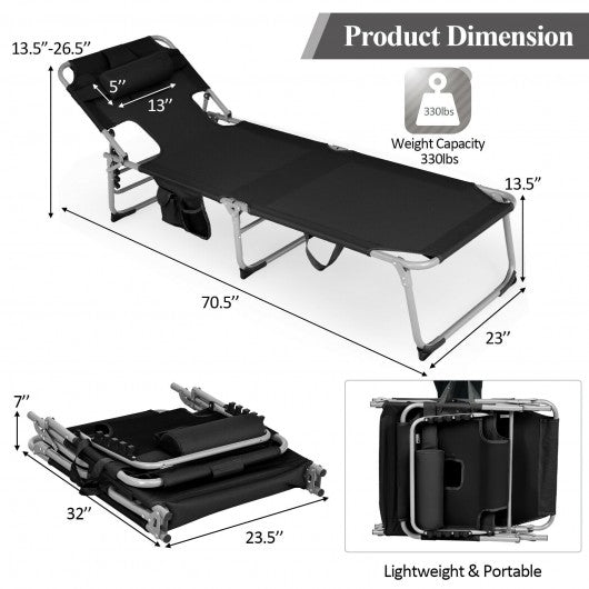 Folding Beach Lounge Chair with Pillow for Outdoor-Black