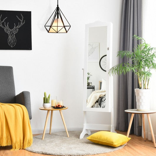 Mirrored Lockable Jewelry Cabinet Armoire Organizer Storage Box-White