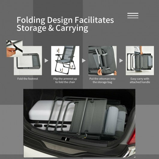 Set of 2 Patiojoy Patio Folding Dining Chair with Ottoman Set Recliner Adjustable-Gray